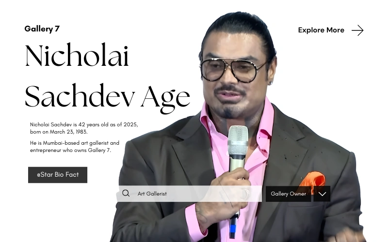 Nicholai Sachdev age is 42-years (born March 23, 1983). He is Mumbai-based art gallerist and entrepreneur who owns Gallery 7. He’s recognized for his 20+ year career in the art industry and recently married actress Varalaxmi Sarathkumar in July 2024 in Thailand. While his exact net worth isn’t publicly disclosed, he’s built significant wealth through his gallery business.