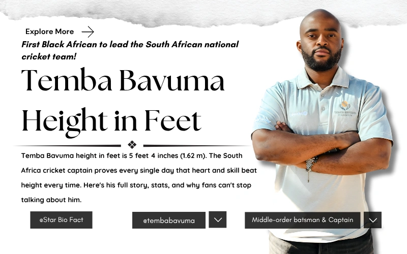 Temba Bavuma height in feet stands out – in the best possible way. He walks out to bat, and the crowd still cheers louder because they know the story behind the number. When people search for “what is Temba Bavuma’s height in feet,” they’re not just looking for a measurement. They’re looking for inspiration. They want to know how someone who’s 5’4″ can lead a nation and take on the world’s best bowlers.