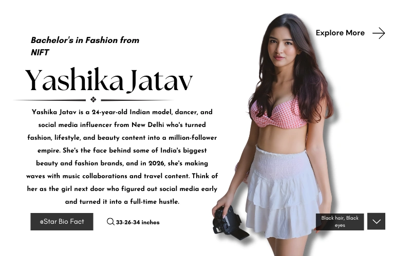 Yashika Jatav is a 24-year-old Indian model, dancer, and social media influencer from New Delhi who’s turned fashion, lifestyle, and beauty content into a million-follower empire. She’s the face behind some of India’s biggest beauty and fashion brands, and in 2026, she’s making waves with music collaborations and travel content. Think of her as the girl next door who figured out social media early and turned it into a full-time hustle.